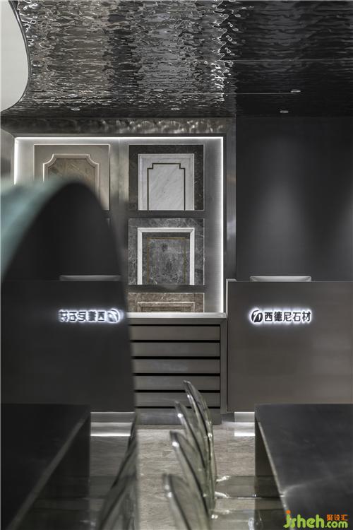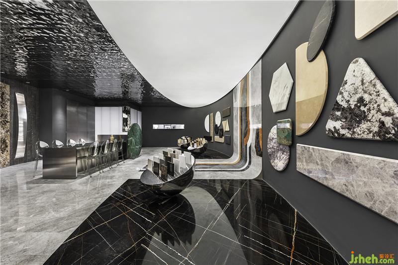 為創(chuàng)作尋找一個靈感點,能夠引導設(shè)計元素的整合。整個石材展廳秉持“以全新視角審視石質(zhì)材質(zhì)之間微妙關(guān)系”的原則,由“太空”的靈感出發(fā)對材質(zhì)、人與空間作了全新解讀。閉目幻想置身于浩渺無垠的太空宇宙中,人的身體在懸浮、運動的巨大星體面前顯得如此渺小。也正是這種懸殊的狀態(tài),才使我們真切地被星體變幻的色彩和微妙的肌理所震撼,體會“材質(zhì)”的張力和沖擊感。設(shè)計的每個細節(jié)都用心營造視覺上的別開生面,形、色、質(zhì)相互作用傳遞出石材的個性。