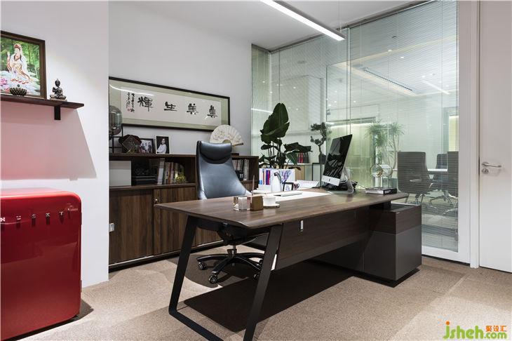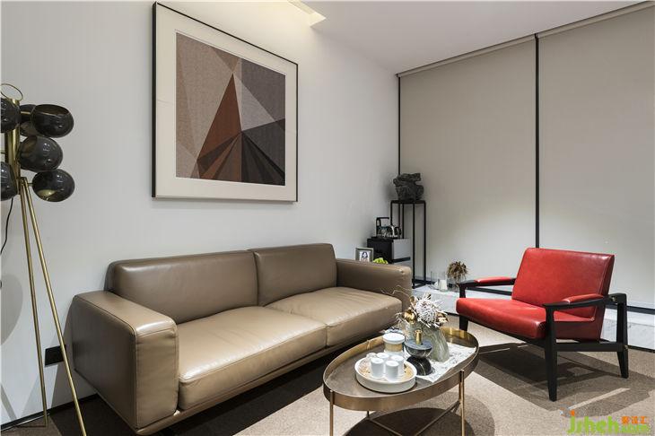 辦公室內(nèi)細膩出色的裝飾,遵從自然優(yōu)雅的原則,尊重原有空間的形態(tài),座椅和冰箱選用了跳脫的紅色,突出空間的視覺色彩。