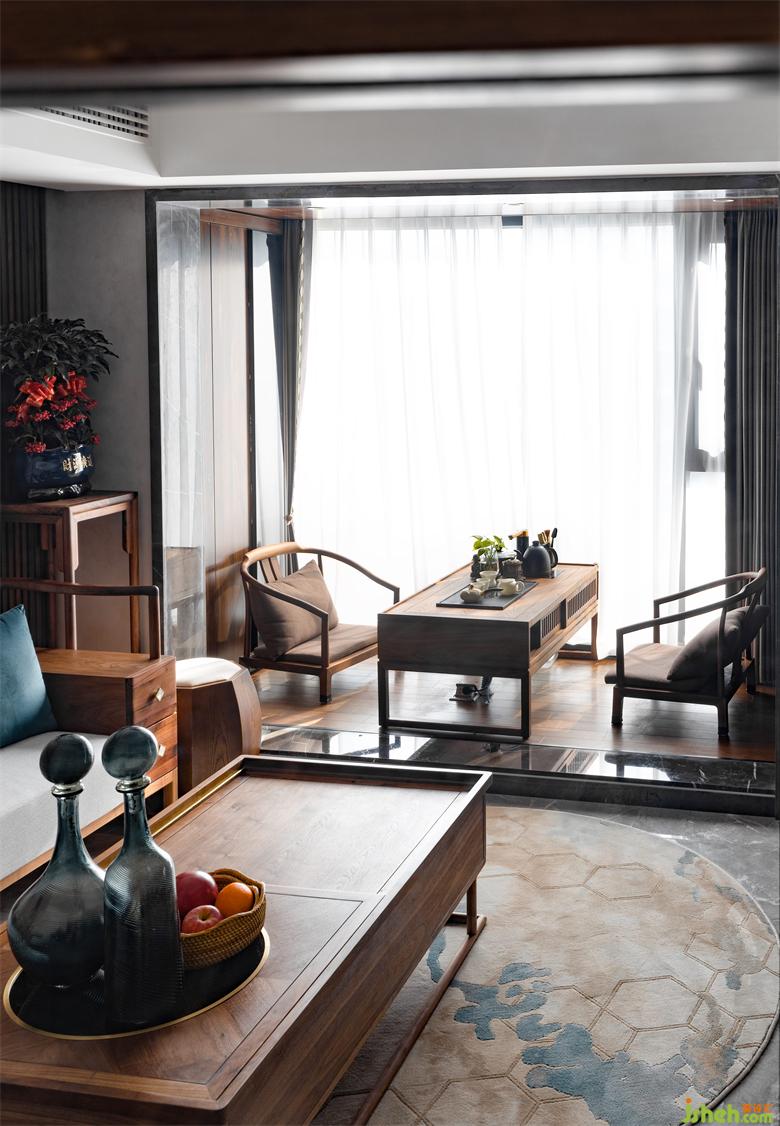 規(guī)劃出的茶空間氛圍感十足,室內(nèi)設(shè)計(jì)師半透的白色窗簾提供朦朧的美感,而在拉開(kāi)窗簾后,高樓層的最佳陽(yáng)光就會(huì)完美呈現(xiàn)出來(lái)。即便處于嚴(yán)寒冬日,采用的地暖也能讓住戶舒適,新風(fēng)系統(tǒng)則使得住戶不開(kāi)窗也能享受優(yōu)質(zhì)的空氣,室內(nèi)設(shè)計(jì)師中央空調(diào)為本身局促的空間留出更多空間規(guī)劃使用。