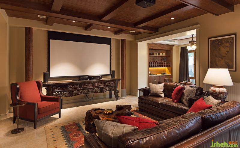 影音室室內(nèi)設(shè)計(jì)師采用中西合璧的手法進(jìn)行打造,中式文化的歷史感和文化底蘊(yùn)與現(xiàn)代美式的悠閑舒適、自由隨意相結(jié)合,使得整個(gè)空間更加沉穩(wěn)大氣,韻味十足。