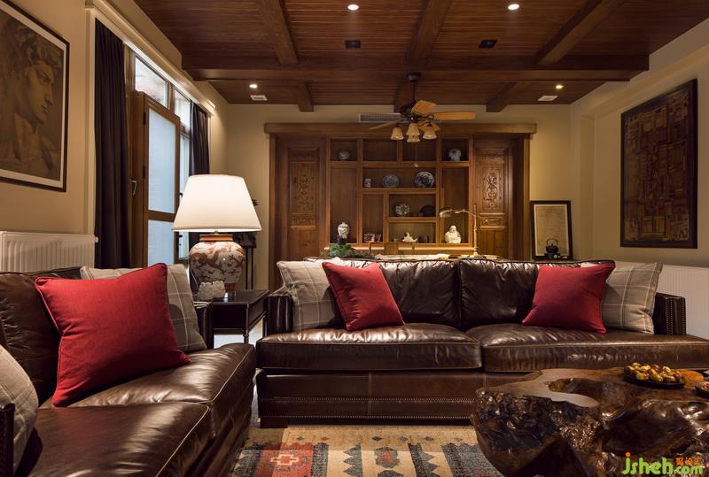 客廳整體室內(nèi)設(shè)計(jì)師以米黃色為基調(diào),搭配咖色與白色木作,自然休閑、溫暖舒適。美式沙發(fā)和中式圈椅的組合,經(jīng)典、和諧,耐人尋味。