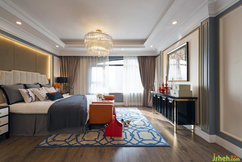 主臥空間加入俏皮動感的活力橙,以其溫潤的質感和溫暖的色澤弱化高級灰?guī)淼母呃滟|感,使臥室極具柔和的感觸。主人時尚與優(yōu)雅的特質也表現(xiàn)的淋漓盡致。