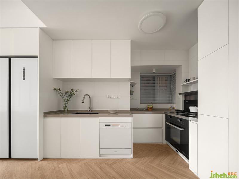設(shè)計改造后是寬敞的餐廚一體,在廚房也可以隨時看到小寶,與家人互動,儲物收納功能也多了,洗碗機烤箱集成灶都安排上了,做飯也變成是一種享受。