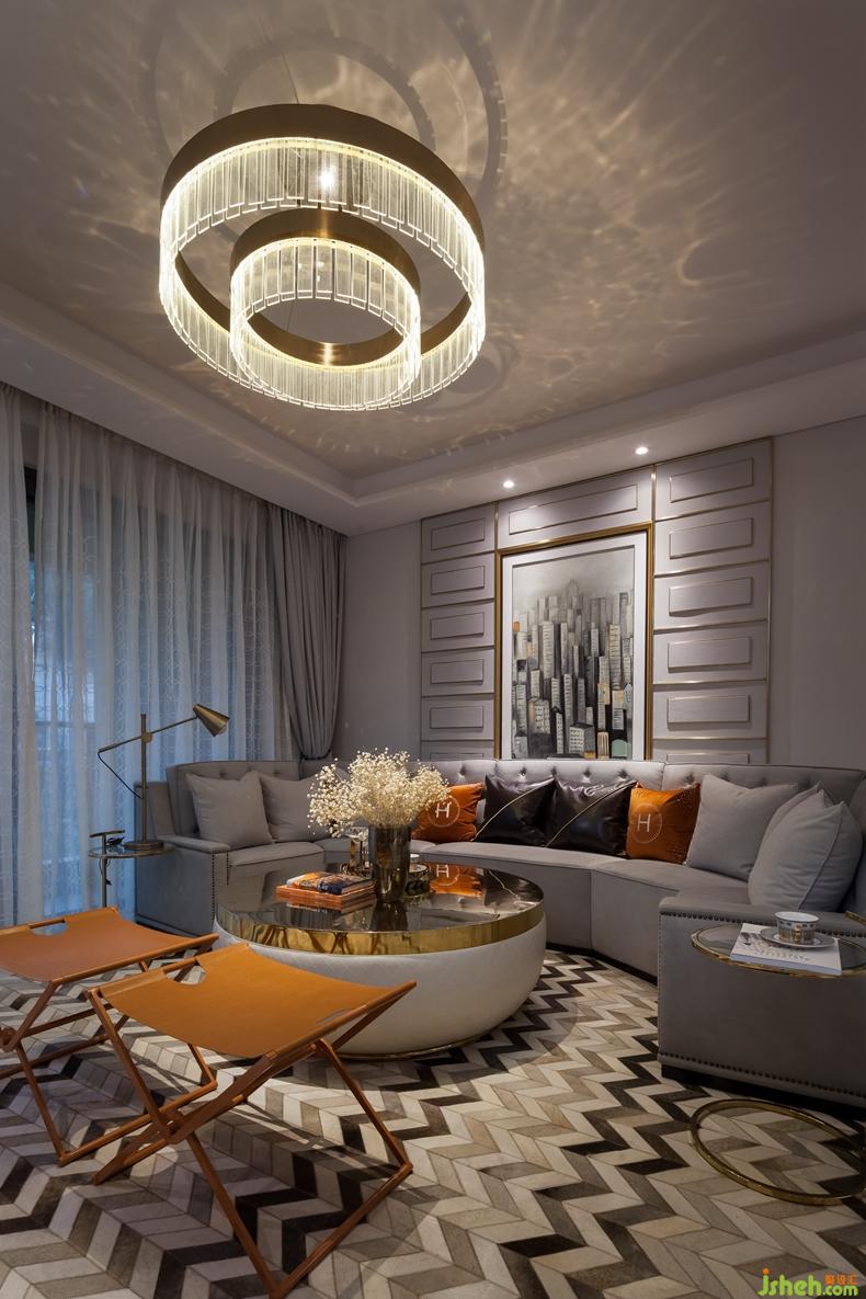 本案例在色彩設(shè)計(jì)上采用單一突出手法,以橙色為主色調(diào),輔助色皆以中性色襯托。室內(nèi)設(shè)計(jì)師