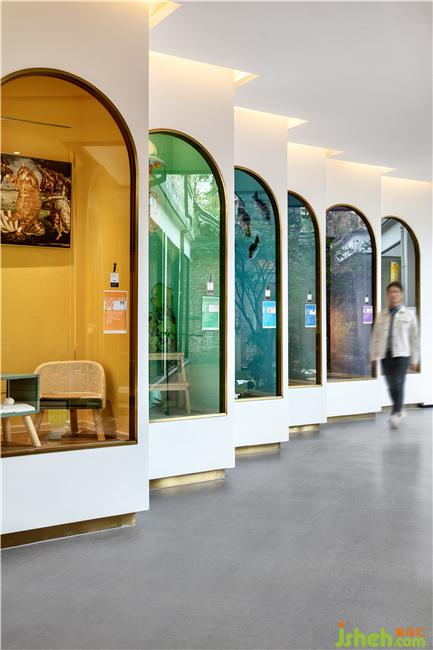 空間沿用原民國中式院落的建筑格局基礎(chǔ)上合理利用,劃分成王家大院(入戶花園),貓公寓,醫(yī)務(wù)室,貓郵局,貓數(shù)屋,茶水吧,海外北堂,大教室,茶室,創(chuàng)客空間,烘焙教室等空間。充分運(yùn)用“空間情緒設(shè)計(jì)”理論,通過空間層次與色彩、陽光的相互輝映,改善我們與周圍一切事與物的關(guān)系。地臺(tái)與地面形成自然空間隔離,滿足功能性的同時(shí)做到空間的延展。二層空間有較高的斜面頂我們利用這個(gè)層高做了玻璃棧道天橋讓空間有更多的層次與自由。文創(chuàng)設(shè)計(jì)