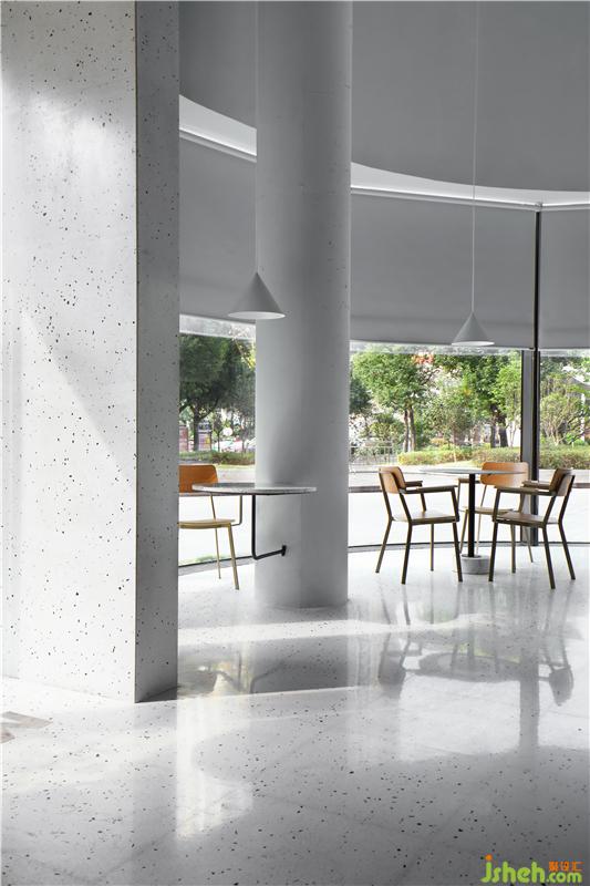 餐廳設(shè)計(jì)在整體室內(nèi)空間上,設(shè)計(jì)團(tuán)隊(duì)突破傳統(tǒng)商務(wù)風(fēng)格的沉重色調(diào),提取了MAJOR的品牌標(biāo)志色——藍(lán)色、白色,與金屬進(jìn)行碰撞,時(shí)尚而又清新。不銹鋼與顆粒感的水磨石,為整個(gè)空間帶來(lái)獨(dú)特的肌理感的同時(shí)并賦予精致的細(xì)節(jié)和空間特征。