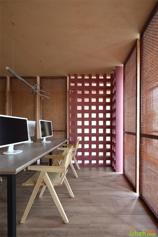弧形的墻體相互交織,通透半通透的空間增加了空間的”透氣性“,辦公室設計創(chuàng)造出了曖昧柔和的空間邊界,弧形的空間圍合虛化掉了空間的緊張感,增添了空間的趣味性。接待空間曲線的圍合形式,不像直線般平淡,也不像折線般生硬,有一些柔美卻灑脫,謙遜卻不羈的感覺.