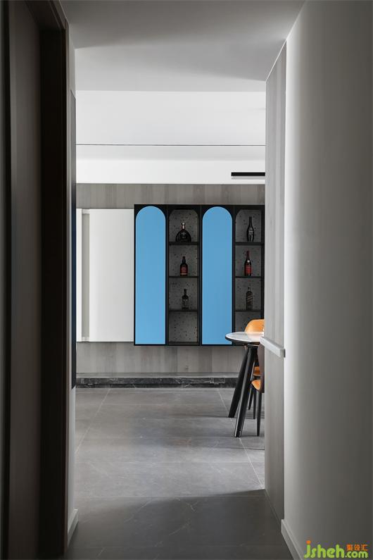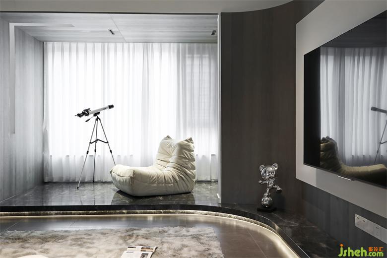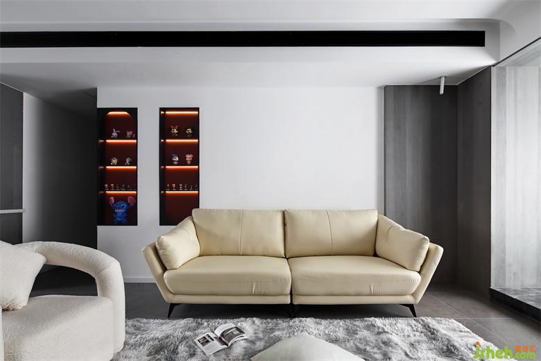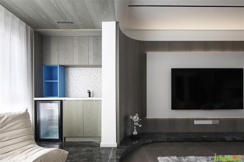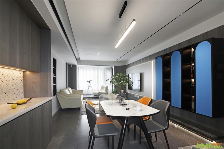 客廳設(shè)計簡潔干凈,盡顯輕松、自然、舒適??臻g之內(nèi),簡約的燈帶及電視墻線條分明,家居設(shè)計點綴的紅藍(lán)色交織出溫暖氣息,讓家的意境更自在有趣。