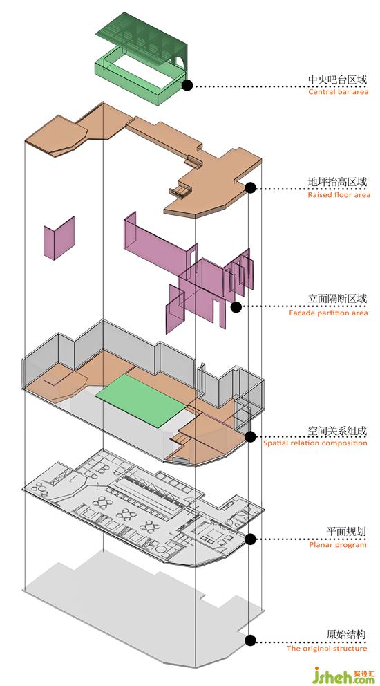 Based on the field and outside the main entrance of the horizon because of a fall of on any account, therefore increase the steps in the transition of entrance space, at the same time use the metal ground lights and a semipermeable partition transformation between light and shadow, and the space increased cascade of virtual and real feeling, make the dynamic line step by step, not only ensure the integrity of the main entrance and refine the illicit close sex of the bar.