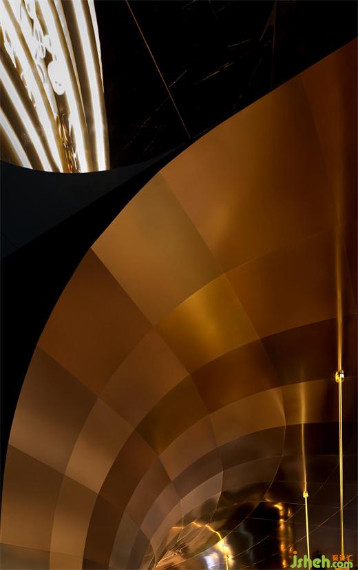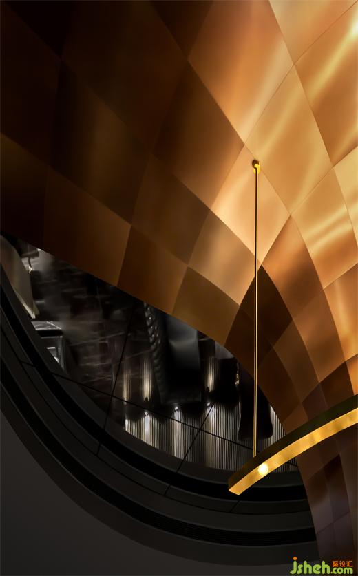 每一片金屬由散到聚,再透過空間中環(huán)形陣列中的循序漸進(jìn)地組合在一起,深圳酒吧設(shè)計(jì)形成一個(gè)極具張力感的流動(dòng)空間。恰如水浪翻滾時(shí),涌動(dòng)而飄蕩的瞬間,以此呼應(yīng)深度感觸威士忌的靈魂之旅的喻比,同時(shí)色彩的對(duì)撞亦為空間帶來更多層次。