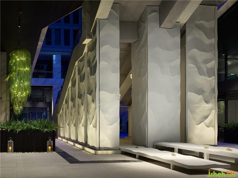 2020年初,融匯國際大廈內(nèi),經(jīng)營多品類菜式的龍庭酒家與寫字樓內(nèi)斐馳辦公同時(shí)完工投入使用,餐廳與斐馳辦公均由大廈投資方開發(fā),WIT方夏設(shè)計(jì)受托完成跨地下兩層的餐廳空間設(shè)計(jì)。