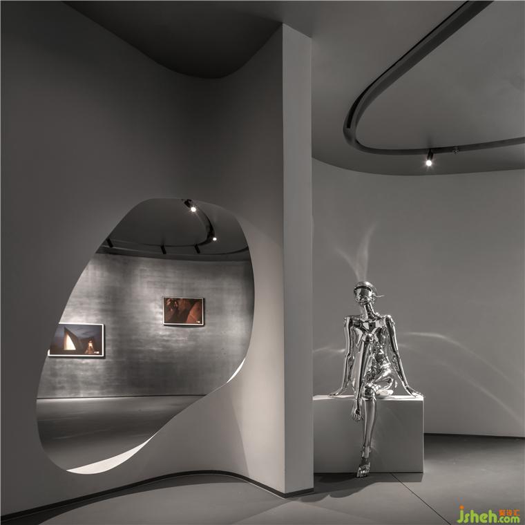 展廳里會定期舉行影展,冀望通過展覽內(nèi)促鼎極的自身進(jìn)化。其次,藝術(shù)廊道由機(jī)械快門的造型分隔成段,每段記錄一個(gè)鼎極拍攝的故事和場景。