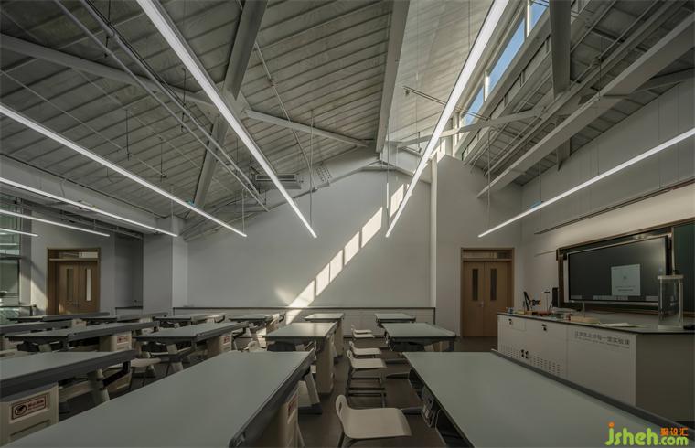 過去的平房式的廠房被改造成全天光的生物課室,讓孩子們在最好的“顯色性”的光線下觀察和學(xué)習(xí)生物知識。