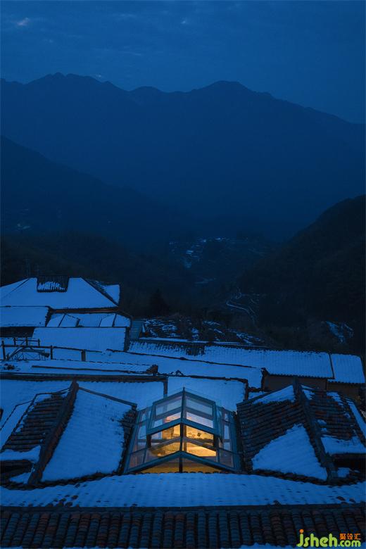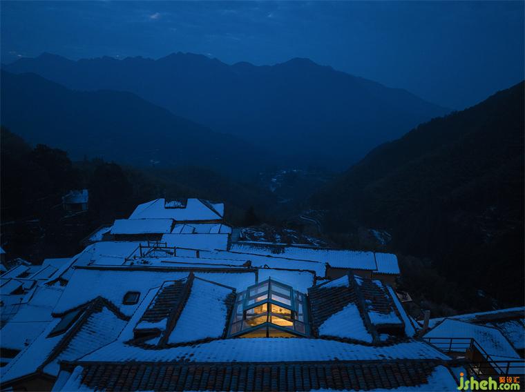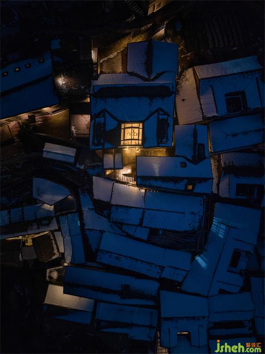 十鐘山房隱于郁郁蒼蒼的半山腰,夜晚俯瞰,通體透亮。