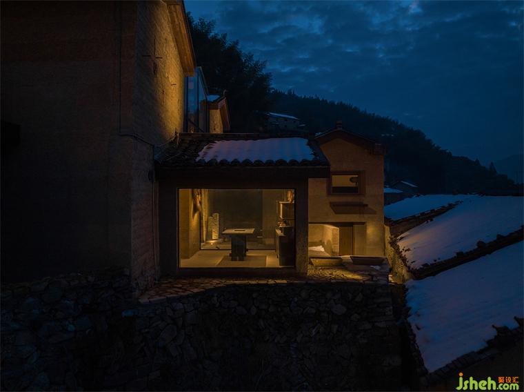 十鐘山房與原住民的房子別無二致,完美融于崖壁村落之中。但實際上,它改建自一個鋼筋混凝土的房子,設(shè)計選擇尊重村落原始肌理,部分拆除重構(gòu),以夯土與木構(gòu)房中房來組織空間。