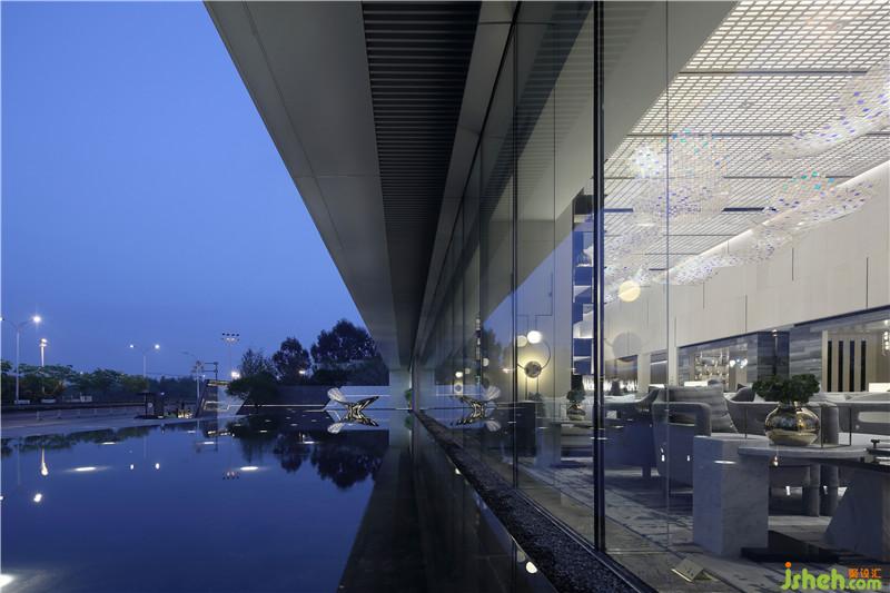 設(shè)計(jì)師同時(shí)也強(qiáng)調(diào)室外景觀與室內(nèi)空間的關(guān)系,透過(guò)巨大的落地玻璃,設(shè)計(jì)融入遠(yuǎn)處的青山和白水,燕鳥(niǎo)在這方天地轉(zhuǎn)圜翱翔。室內(nèi)室外,舍棄浮華與喧囂,重歸天地與自然。