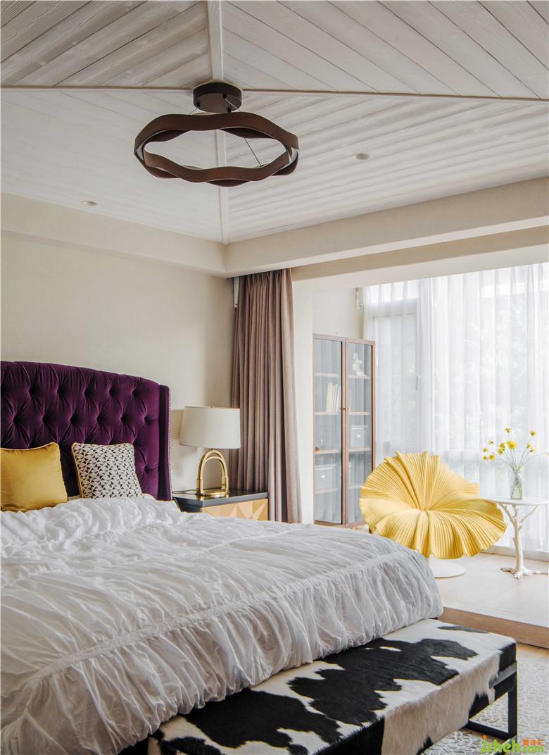 主臥的采光極好,這款漂亮的BloomChair是設計師Kenneth Cobonpue的作品,自然的褶皺和鮮艷的顏色,讓它宛如一朵綻放的鮮花,坐在這么可愛的椅子上,感覺自己變成了鮮花中的拇指姑娘。