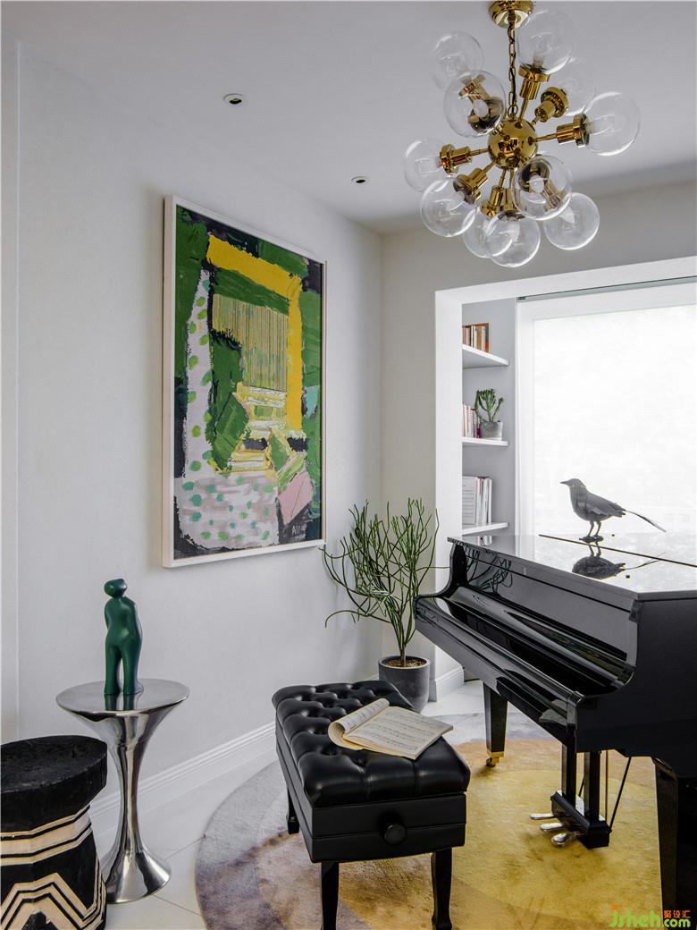 對我而言,好的室內(nèi)裝飾意味著,你一走進去就能看到并感受到屋主的個性,一些能夠喚起點滴生活回憶的物件;墻上的掛畫是業(yè)主的女兒曾經(jīng)的畫作,色彩非常驚艷,我特地以這幅畫為原型去定做了大尺寸的手工織毯。
