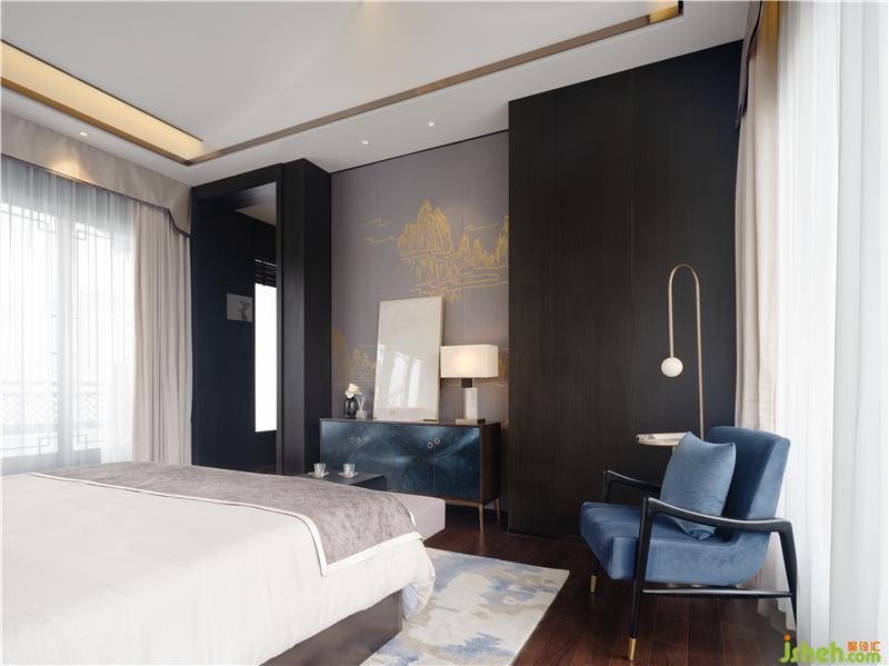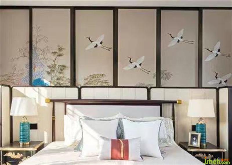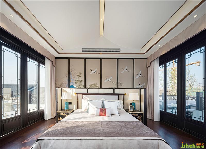 設(shè)計(jì)師匠心獨(dú)運(yùn)地立足于“傳承”,著力于“創(chuàng)新”,用場景化和現(xiàn)代的演繹呈現(xiàn)一個(gè)浪漫的人文休憩空間。東方意象中的鶴,寓意吉祥與高雅,設(shè)計(jì)師將展翅于空的鶴以工筆畫的形式描摹于主臥背景墻上,與茂密的竹林、蔥蘢的樹木鋪墊一室清雅格調(diào)。