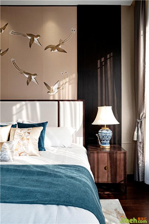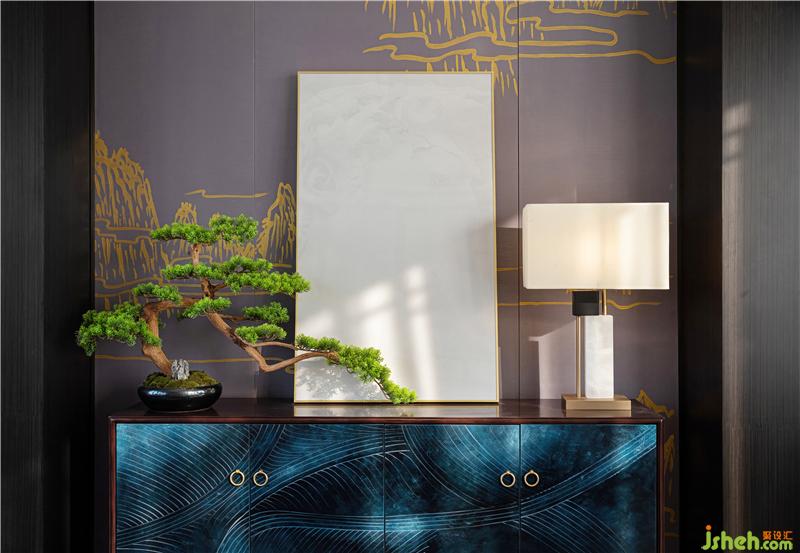 摒棄常規(guī)東方元素的雜糅,設(shè)計萃取文化之精髓。老人房的設(shè)計中,設(shè)色依然以沉靜的靛青色為陳設(shè)調(diào)荊州樣板房設(shè)計,青花瓷瓶、迎客松的擺設(shè)即刻重現(xiàn)了一個古典且安靜的人文休憩場景。