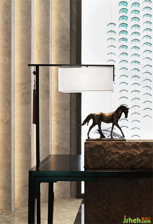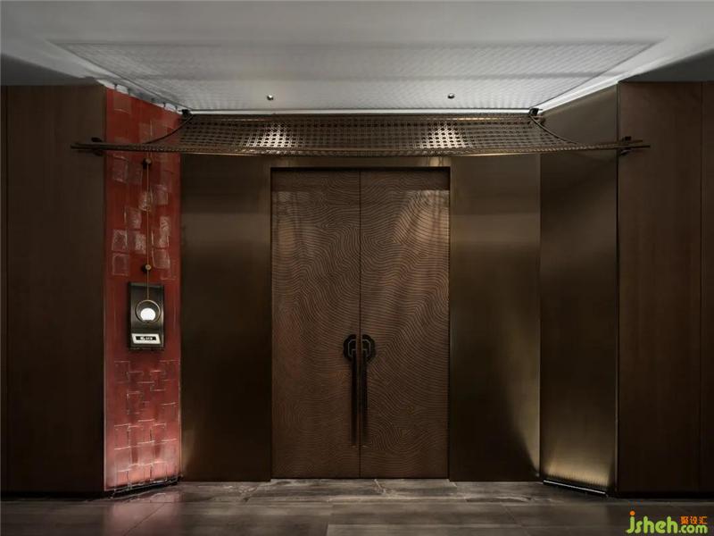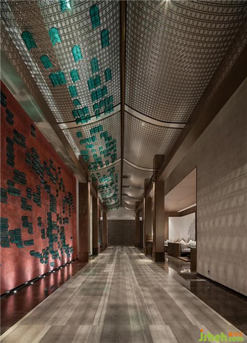設(shè)計師以濃墨重彩的力度來描繪過渡場域的東方氛圍,從用色到用材,從結(jié)構(gòu)到立意,延伸過道的縱深視覺感,實現(xiàn)煙波浩渺而意境悠悠的江南風致。