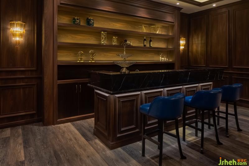 美式會所位于建筑的中軸,室內(nèi)設(shè)計師希望會所是體驗產(chǎn)品形象的核心之地。步入式玄關(guān)、會客廳、酒吧、燭光餐廳、壁爐一系列充滿儀式感的設(shè)計意像無不讓顧客動容。愉悅交談的客人老友落座于此,配上威士忌和黑膠唱片的質(zhì)感音色,便是優(yōu)雅熙攘的感受。