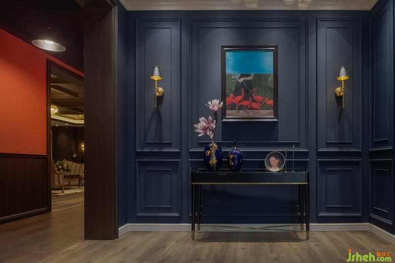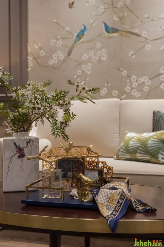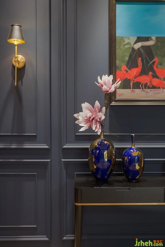 設計師一直從不同的角度去分析視覺需求與空間、空間與產(chǎn)品的相互關系。緊鄰櫥窗的法式東方空間氣質(zhì)如同貴族名流般高貴,優(yōu)雅地詮釋著她的美學觀點,又不遵從傳統(tǒng),灰色木紋體現(xiàn)著她的獨立與個性,配以象征中西文化交融的花鳥畫作,散發(fā)出她的魅力與高雅。