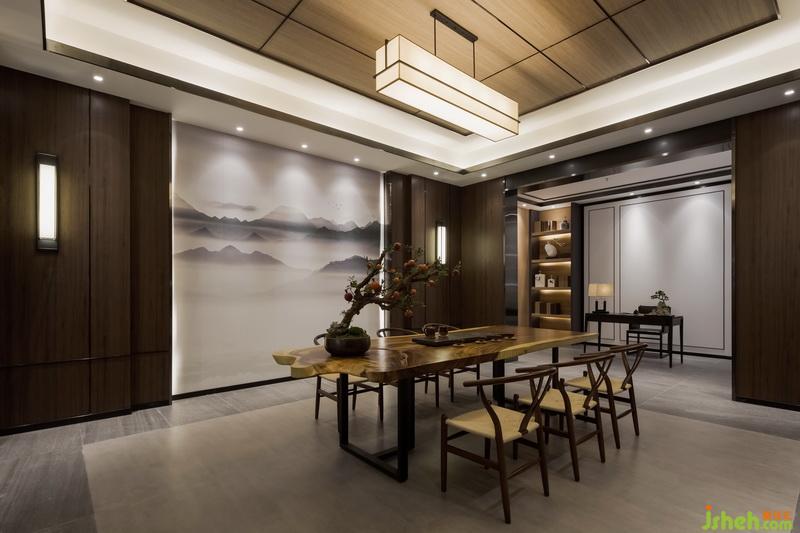 《園冶》中提到,“雖由人作,宛自天開”。我們遵循自然美學,營造精神境界,創(chuàng)造出一種將空間與自然結合的體驗。新中式空間分為閱讀區(qū)與茶區(qū),室內(nèi)設計師提煉傳統(tǒng)元素,結合板材產(chǎn)品特質(zhì),在空間中進行了隱性表達。