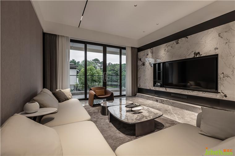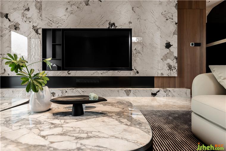 主要材料/仿石材瓷磚 進口巖板 檀木木紋飾面 膚感膜柜體飾面 布紋護墻板
