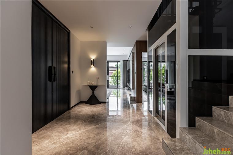 戶內(nèi)花園是主人生活品味的第一呈現(xiàn),佛山保利云上別墅裝修設(shè)計師利用階梯的錯落關(guān)系,通過植物花箱的高低銜接,結(jié)合瀑布流水墻的動態(tài)渲染,打造迎客模式。流水與鵝卵石相互碰撞,產(chǎn)生悅耳的聲音,如大自然般清新脫俗,這也讓主人回家富含了儀式感。