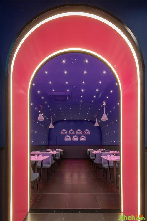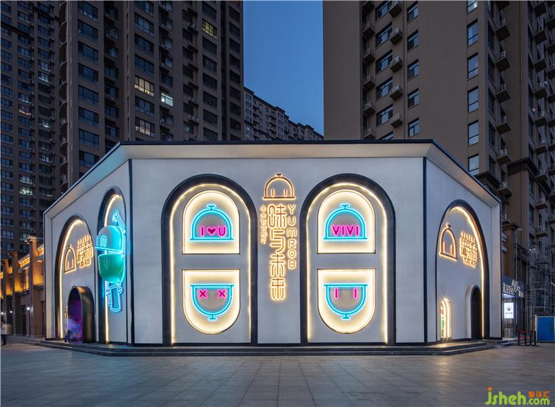 將抽象的品牌概念,轉(zhuǎn)化為可感知、可傳播的空間語(yǔ)言,并為商業(yè)經(jīng)營(yíng)增加效益,是本案設(shè)計(jì)思考的核心。故而在門頭設(shè)計(jì)上,室內(nèi)設(shè)計(jì)師運(yùn)用了極具建筑感的形象,在不同方位立體化地展現(xiàn)“味”與“未來”。大膽鮮明的色彩布置,讓餐廳設(shè)計(jì)成為街道靚麗而醒目的存在。VIVI的卡通化IP形象不僅可以作為賣點(diǎn)吸人眼球,還可以形成自己的視覺符號(hào),增加品牌的辨識(shí)度。
