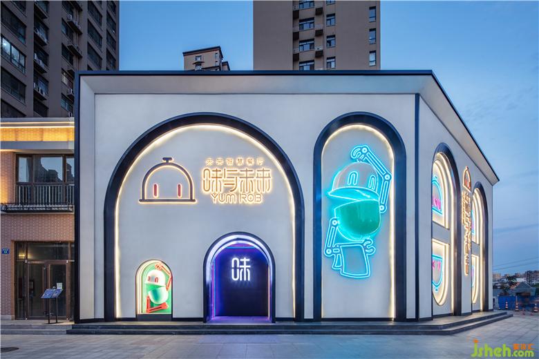 用餐區(qū)域提取品牌形象、未來感作為貫穿整個空間的元素,藉由天馬行空的設計手法對原有的空間進行了重新解讀。未來新科技元素的設計,擺脫了傳統(tǒng)餐廳設計的一成不變的沉悶感,置身其中仿佛漫步在未來時空。頂面的圓形鏡面與發(fā)光體的結(jié)合,營造相對靜謐舒緩的區(qū)域,賦予整個空間一種深邃的氛圍感。