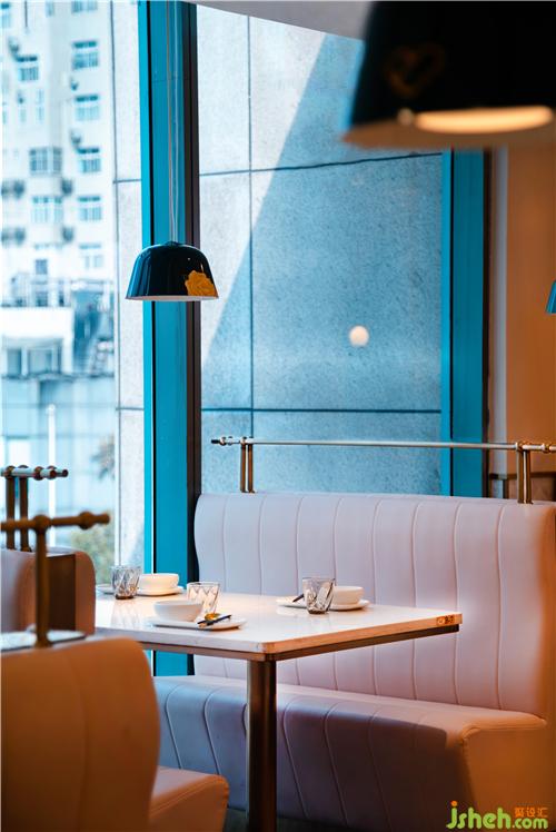 水紋不銹鋼在室內(nèi)形成一個(gè)充滿流動(dòng)性的天花空間,沖孔板拼接的"圍墻"隔而不斷,用幾何之形表空間之美。不僅提升了餐廳設(shè)計(jì)的體驗(yàn),也顯示出對(duì)傳統(tǒng)港式餐飲獨(dú)特而現(xiàn)代的詮釋。
