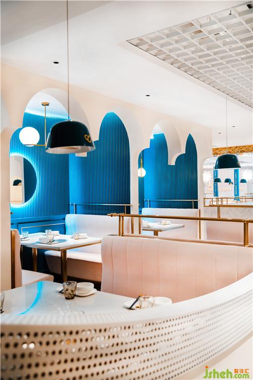 經(jīng)過(guò)充分地探索與分析空間與品牌之間的關(guān)系,室內(nèi)設(shè)計(jì)師最終提取拱形的意象作為貫穿整個(gè)空間的線索,以尋求藝術(shù)感和商業(yè)化兩個(gè)元素的和諧共存。門頭處花團(tuán)錦簇的拱門設(shè)計(jì),能瞬間俘獲女性客戶群體的芳心。羅列有秩的墻面造型,增加立體效果的同時(shí),打破了大面積純色所帶來(lái)的單調(diào)和平淡,為整個(gè)外觀帶來(lái)不凡的視覺(jué)體驗(yàn)。