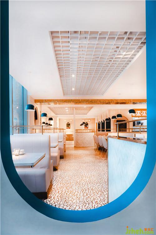 圓形鏡面結(jié)合暗藏的邊線燈帶,在擴大視覺空間的同時,光影與線條虛實之間的交錯,如輕紗遮面,靜謐中平添幾分神秘,使餐廳設(shè)計的空間每時每刻都呈現(xiàn)出不同的氛圍。