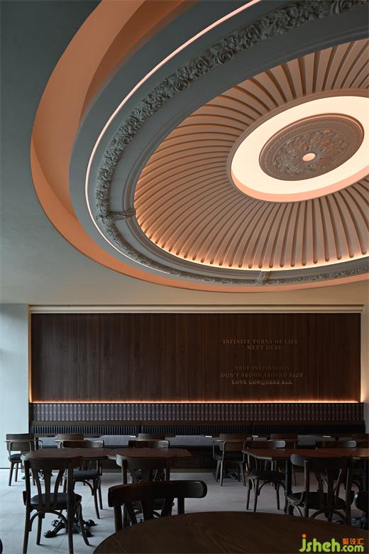 古典主義講求秩序與對稱,現(xiàn)代主義則強(qiáng)調(diào)幾何與實(shí)感,讓歷史與現(xiàn)實(shí)重合,就要將古典與現(xiàn)代重組。餐廳設(shè)計(jì)大堂的廊角處,拱頂立柱與三角鋼琴遙相呼應(yīng),隨腳步的深入,時間也一并緩慢流淌,宛若一場跨越時間的年代對話,將歐洲中世紀(jì)極致精巧的設(shè)計(jì)理念煥活于空間之中。