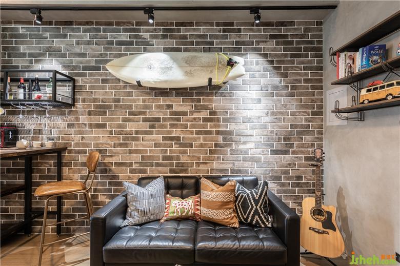 深淺跳色的文化石墻是空間的訴說,輔清水模電視墻,率性的氛圍充盈空氣中;調(diào)性一致的廚房不銹鋼臺面、黑色電器架,完整了空間的韻味;興趣即生活的沖浪板、吉他,是空間性格的亮點,讓人在此能放松自我;更衣室為屋主生活樣貌的體現(xiàn),在此能隨意調(diào)整自己成為理想的樣子,構(gòu)筑了男女屋主的憧憬及理想的生活。裝修公司