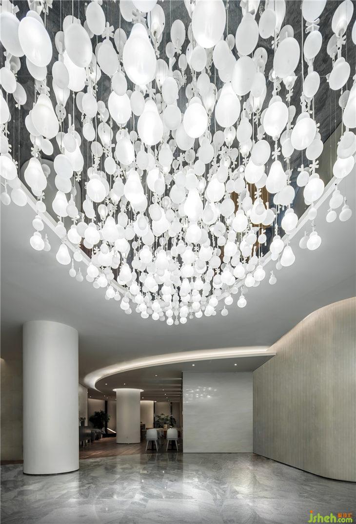 所以我們將光作為入口處的主題,‘月下當(dāng)影時,疏影橫斜中’,在白色的襯托下,光被無限放大、凸顯,最終形成了一種詩意。又之所以選白,是因為它是所有色彩中最為不爭的,但夫唯不爭故天下莫能與之爭,這是白的氣度,也是入口處的氣場。