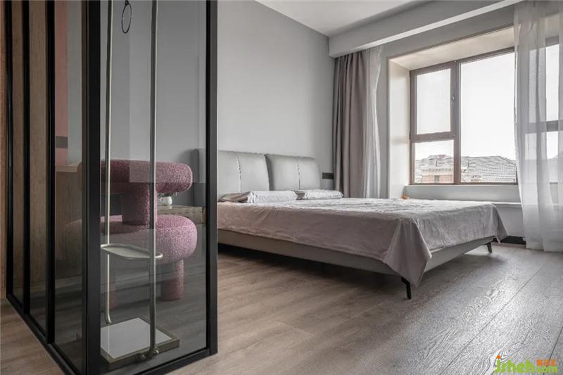 在整體的配色和材質的搭配設計上采用了黑白灰的主色調,稍微加入一些女主人喜歡的粉色,材質上搭配了稍許的原木,由而產(chǎn)生了一種溫柔與力量感并存的化學反映。就像這個家里的女主人和男主人一樣天津裝修室內(nèi)設計。