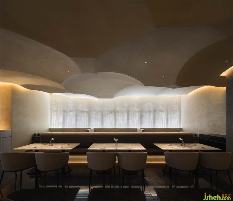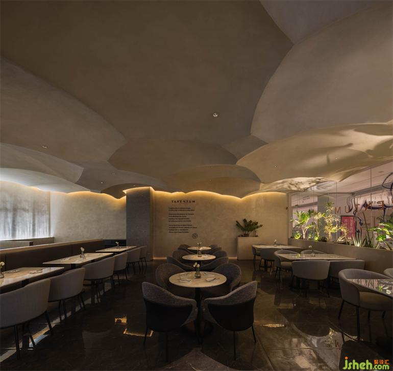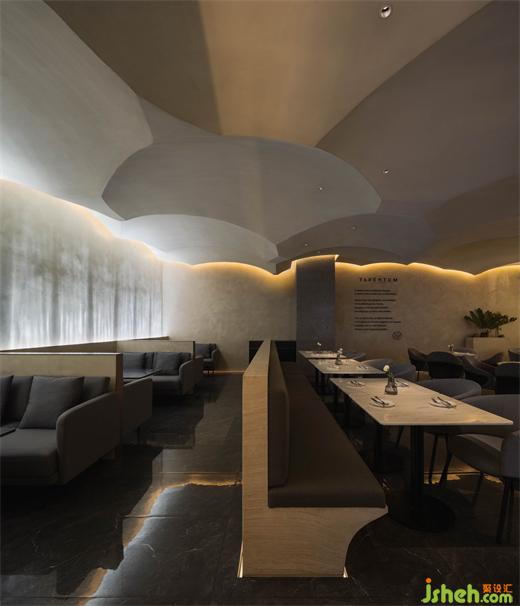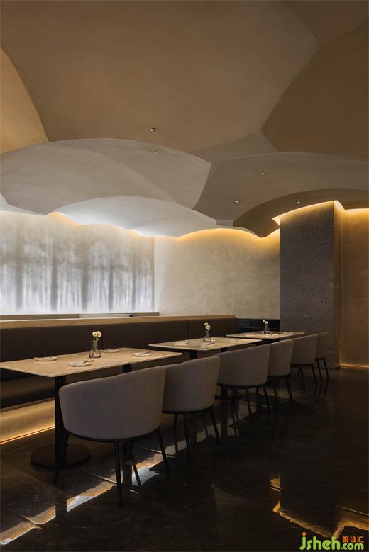 在就餐區(qū)域,隨著沙丘的連綿起伏,餐廳設(shè)計(jì)空間屬性從開放到半圍合再到私密,劃分出不同層次的空間。
