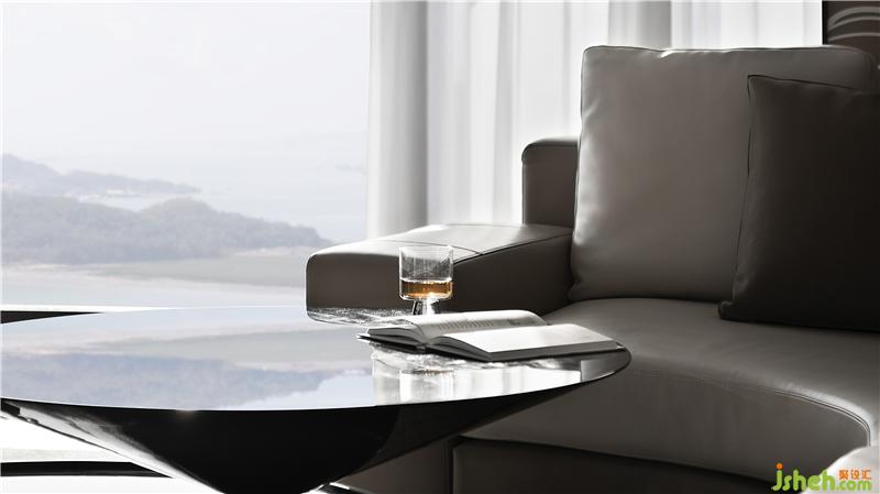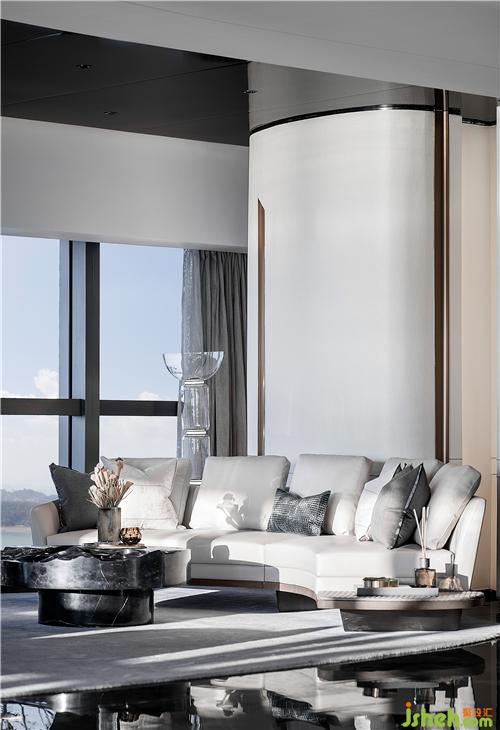 半圍式的洽談區(qū)有效過濾了外界的繁雜又保留獨立性,使之空間疏密有致而又互相滲透。在大幅玻璃幕墻下的自然光,配合空間選材質(zhì)感,靜默流動在光滑的地面,令空間在虛實相間,遠(yuǎn)遠(yuǎn)看去,仿佛呈現(xiàn)在波光粼粼的海面上。
