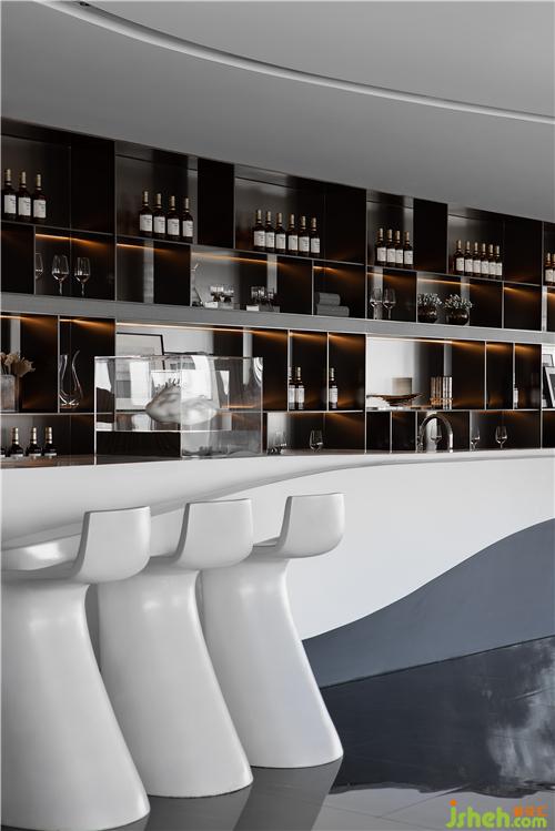 水吧區(qū)域一以貫之的延續(xù)了整個空間設(shè)計風(fēng)格廈門售樓處設(shè)計,漫思運用材質(zhì)的碰撞去打造空間的層次,亦簡亦輕,讓來者的思緒感官得到放松。