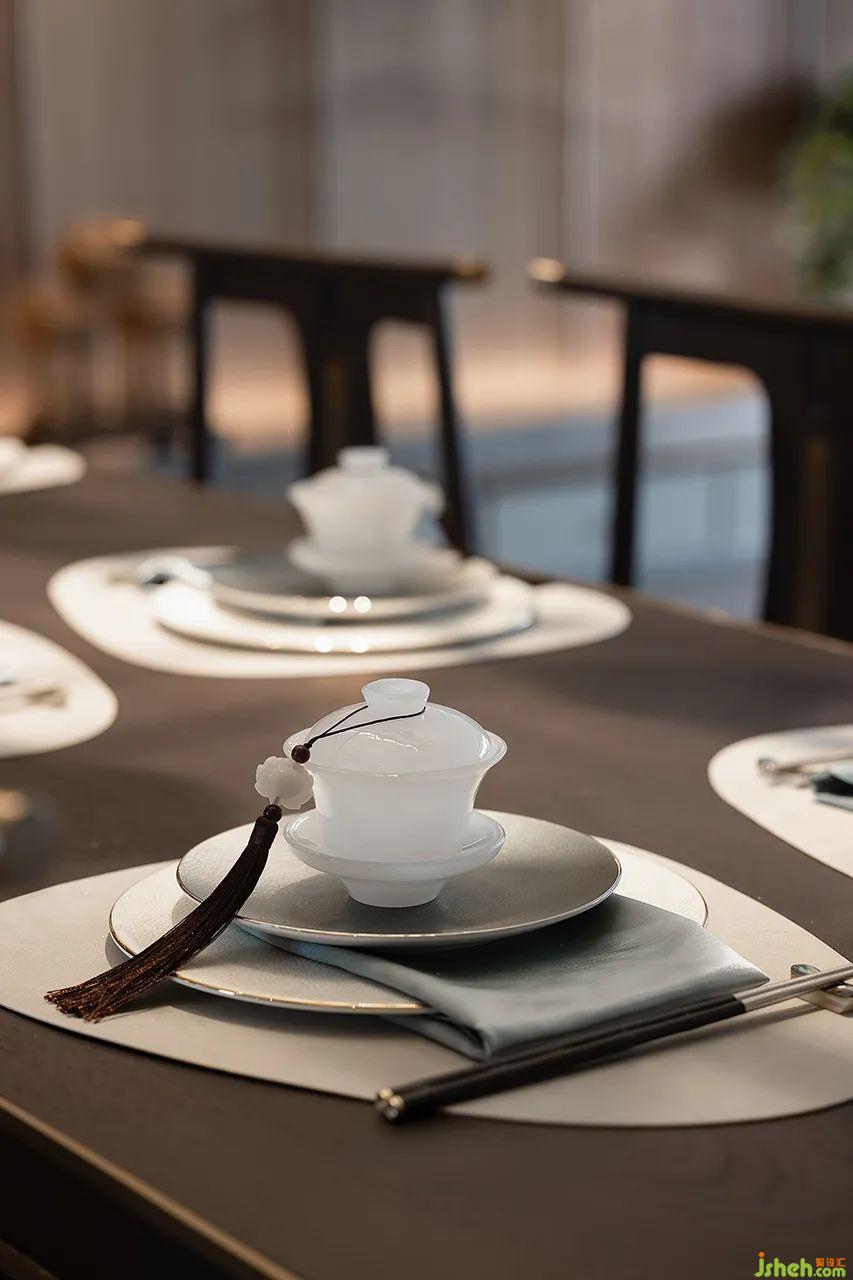 餐廳與客廳分而不割,互相滲透,在自由的空間中形成家庭社交空間。無隔斷設(shè)計(jì)使空間關(guān)系更緊密,生活場(chǎng)景豐富多彩,帶給一家人舒適優(yōu)雅的用餐環(huán)境與社交體驗(yàn)。陳設(shè)以“陶都文化”融匯美好器物延展?fàn)I構(gòu)空間,呈現(xiàn)風(fēng)雅東方詩意生活。