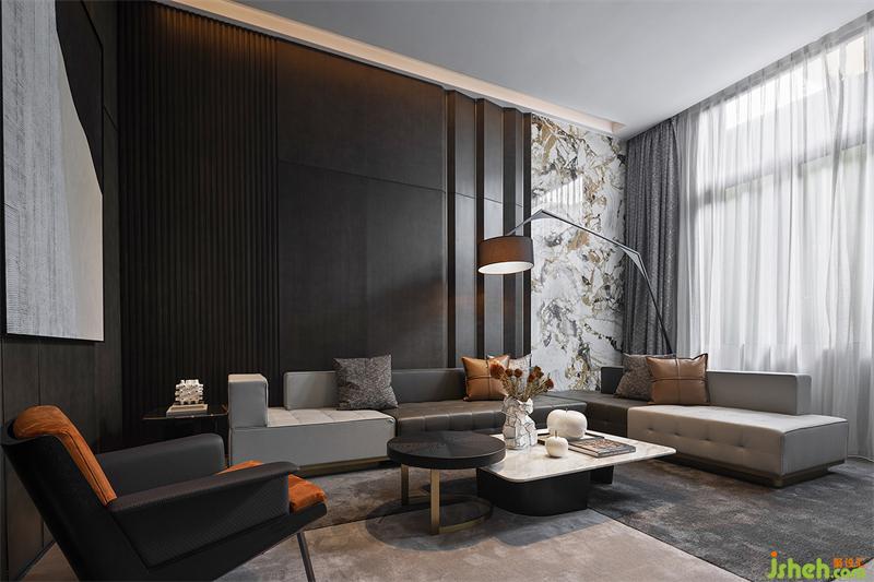 現(xiàn)代空間設(shè)計(jì)元素的簡(jiǎn)潔利落在VIP洽談室得以延續(xù),通過(guò)色塊的疊置、室外自然景觀的碰撞,實(shí)現(xiàn)空間美學(xué)元素的多樣化滲透。