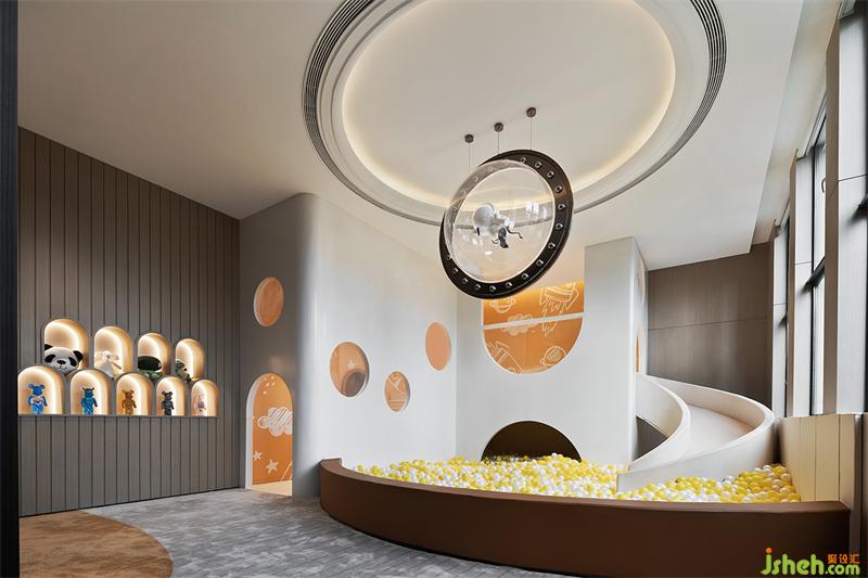 兒童的世界無(wú)憂無(wú)慮,充滿了歡聲笑語(yǔ)。游戲區(qū)域充分尊重兒童喜愛(ài)游戲的天性。為了讓兒童充分調(diào)動(dòng)身體,售樓處設(shè)計(jì)師室內(nèi)空間中設(shè)置了滑滑梯、泡泡池、積木等充分互動(dòng)及開(kāi)拓思維的游戲。