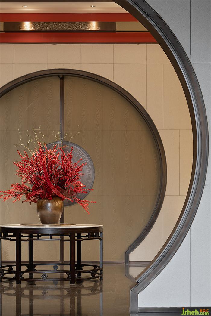 在空間本質(zhì)美的構(gòu)建上,設(shè)置可開(kāi)可合的月洞門(mén),既成為功能結(jié)構(gòu),又作為藝術(shù)創(chuàng)作元素,營(yíng)銷中心設(shè)計(jì)以一種的“隔”的方式,傳達(dá)出傳統(tǒng)東方寫(xiě)意,也讓當(dāng)代氣質(zhì)呼應(yīng)而出。
