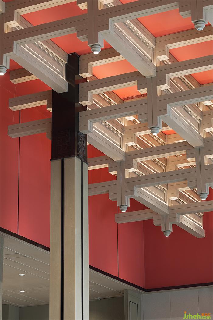 “中為適應(yīng)之謂,庸為經(jīng)久不渝之意”。沙盤(pán)區(qū)在傳統(tǒng)的規(guī)矩與均衡中,創(chuàng)造流動(dòng)的自然之美。營(yíng)銷中心設(shè)計(jì)紅色與原木色相映之間,創(chuàng)造出一種包含著能量的“場(chǎng)域”,凝結(jié)出畫(huà)面的豐盈意境。