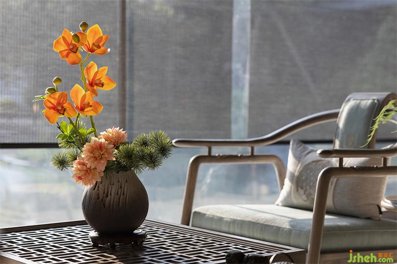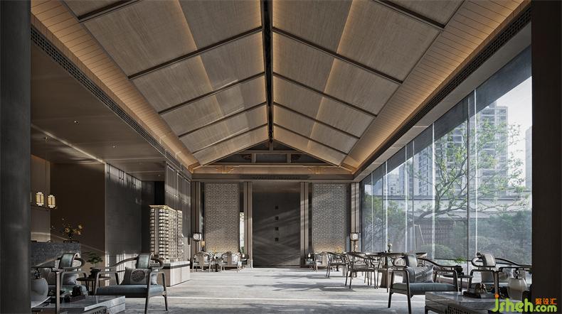 洽談區(qū)的設(shè)計(jì)延續(xù)了東方的禮序之美,對(duì)稱(chēng)布局,一面是開(kāi)闊的園林叢林景色,一面是豐沛的情境體驗(yàn),共生平衡與和諧。會(huì)所設(shè)計(jì)天花以徽派傳統(tǒng)建筑結(jié)構(gòu)為原型,令空間多了些山峰傲骨的巍然氣韻。