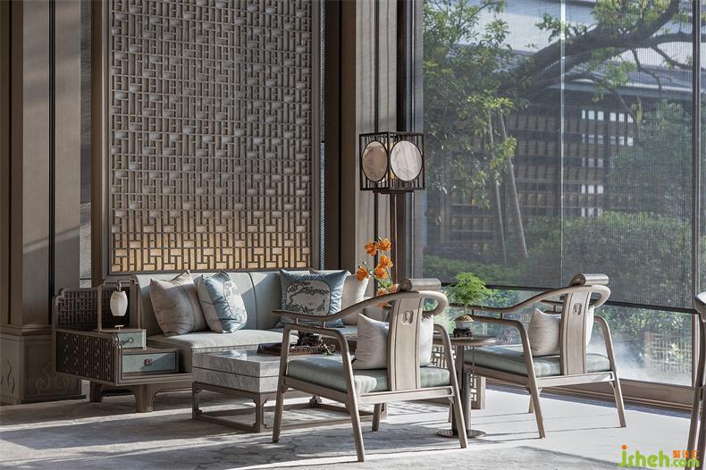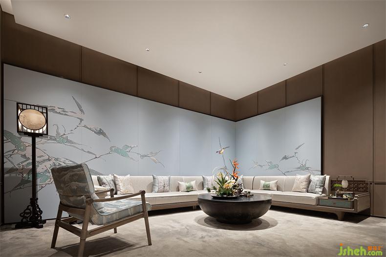 水吧臺(tái)的墻面以門(mén)窗取景,與背景水墨畫(huà)間相呼應(yīng),呈現(xiàn)“檐飛苑溪水,窗落敬山亭出”的寫(xiě)意畫(huà)卷,會(huì)所設(shè)計(jì)搭配宋代中式簡(jiǎn)約的家具,令整體空間在統(tǒng)一和諧的基調(diào)中,散發(fā)出大氣穩(wěn)重的觀感。