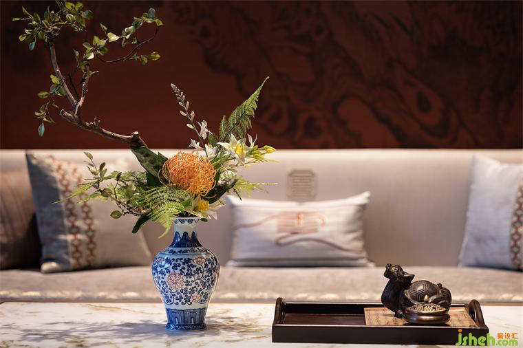 洽談區(qū)的設(shè)計(jì)延續(xù)了空間的禮序之美,搭配宋式家具,長(zhǎng)沙會(huì)所設(shè)計(jì)營(yíng)造家的真實(shí)感受和舒適商談氛圍,光影交錯(cuò)下,一抹中國(guó)紅的柜體,作為跳躍色點(diǎn)燃空間情緒,傳達(dá)著當(dāng)代中式美學(xué)的奢華。